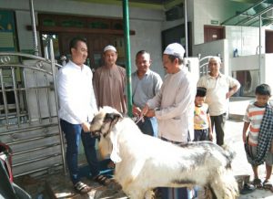 DataSumut.com - Medan Anggota DPRD Kota Medan Fraksi Partai Golkar, M Afri Rizki Lubis S.M., M.I.P menyerahkan satu ekor kambing...