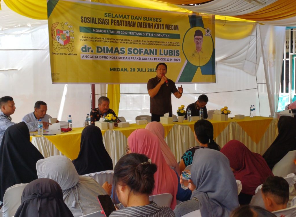 “Saat ini Kota Medan berstatus KLB campak. Kondisi ini harus menjadi perhatian serius bagi kita semua,” ucap dr Dimas Sofani Lubis ketika menggelar Sosialisasi Peraturan Daerah (Perda) Kota Medan No.4 Tahun 2012 tentang Sistem Kesehatan Kota Medan di Jalan Multatuli Lapangan Mastab, Kelurahan Hamdan, Kecamatan Medan Maimun, Minggu (20/7/2025).