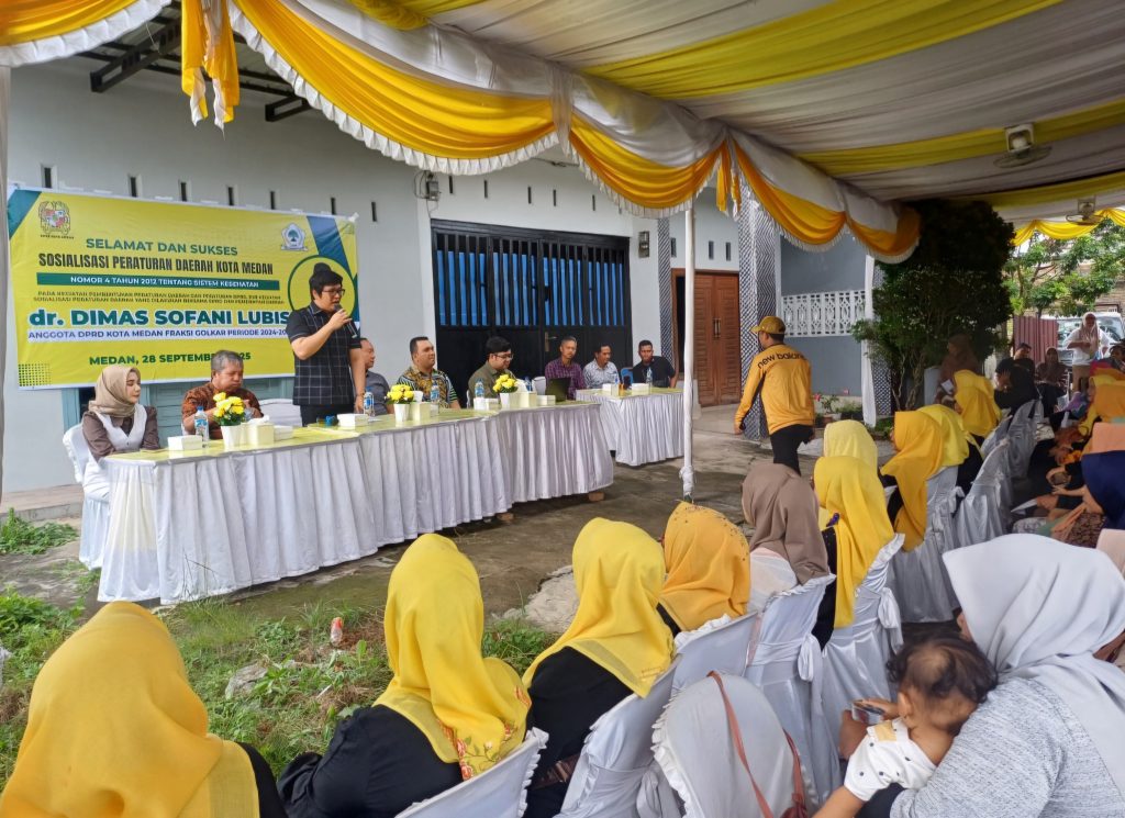 Hal itu diungkapkan Anggota DPRD Kota Medan Fraksi Partai Golkar, dr Dimas Sofani Lubis ketika menggelar Sosialisasi Peraturan Daerah (Perda) Kota Medan No.4 Tahun 2012 tentang Sistem Kesehatan Kota Medan di Jalan Setia Budi Gg. Rukun No.16, Kelurahan Tanjungsari, Kecamatan Medan Selayang, Minggu (28/9/2025) pagi.