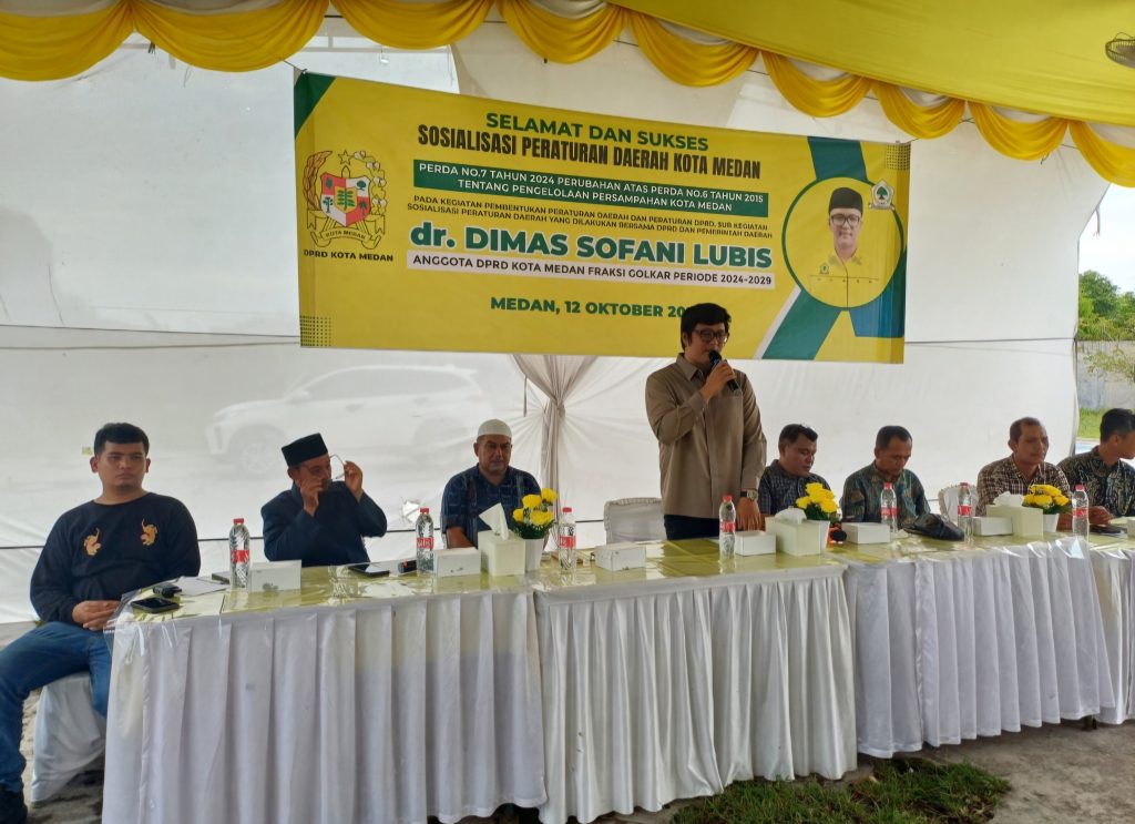 Hal itu diungkapkan dr Dimas Sofani Lubis saat menggelar Sosialisasi Peraturan Daerah (Perda) Kota Medan No.7 Tahun 2024 tentang Perubahan atas Perda No.6 Tahun 2015 tentang Pengelolaan Persampahan di Jalan T.B Simatupang (Lapangan Al Washliyah), Kelurahan Lalang, Kecamatan Medan Sunggal, Minggu (12/10/2025) siang.