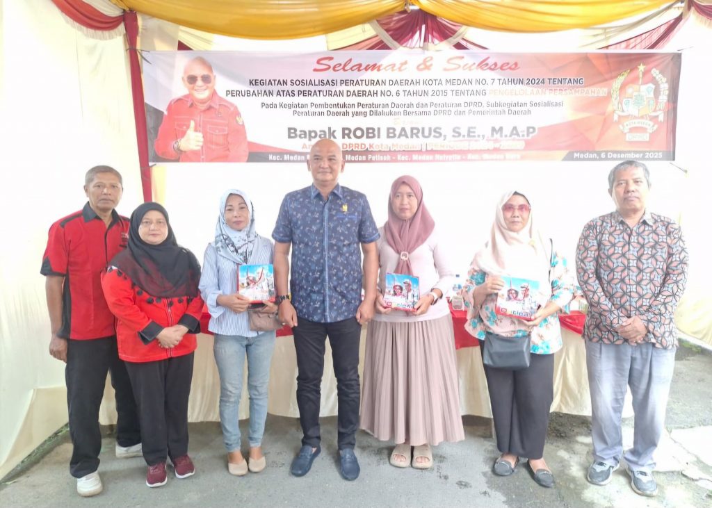 Hal itu dikatakan Robi Barus SE saat menggelar Sosialisasi Peraturan Daerah Kota Medan No.7 Tahun 2024 tentang Perubahan atas Perda No 6 Tahun 2015 tentang pengelolaan Persampahan di Jalan Sekip, Gg Sederhana, Kelurahan Sei Putih Timur 1, Medan Petisah, Sabtu (6/12/2025) sore.